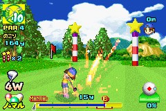 This game features Transfer Pak compatibility with the N64 version of Mario Golf . Players can upload characters and data into the other game.